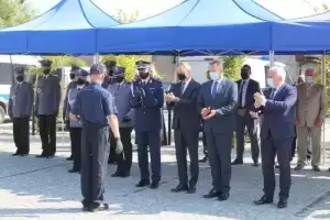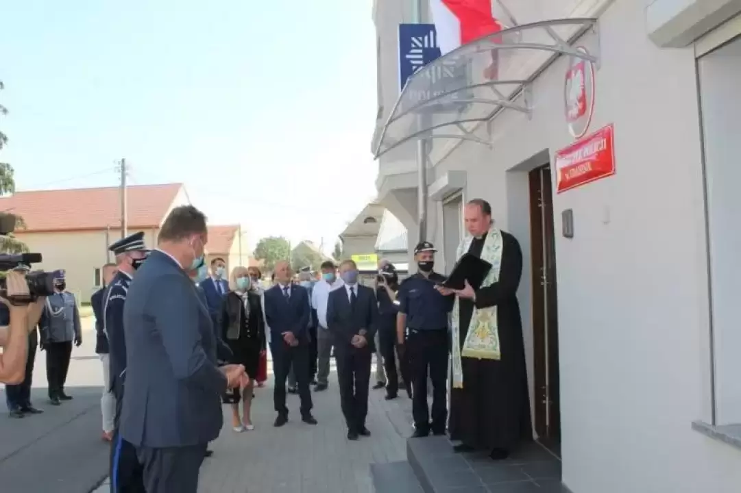 Po zakończeniu części oficjalnej nadszedł czas poświęcenia posterunku przez proboszcza parafii Piekary ks. dr Marka Jodko oraz obejrzenia placówki od wewnątrz.