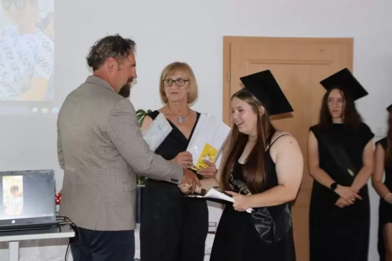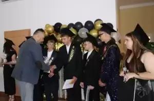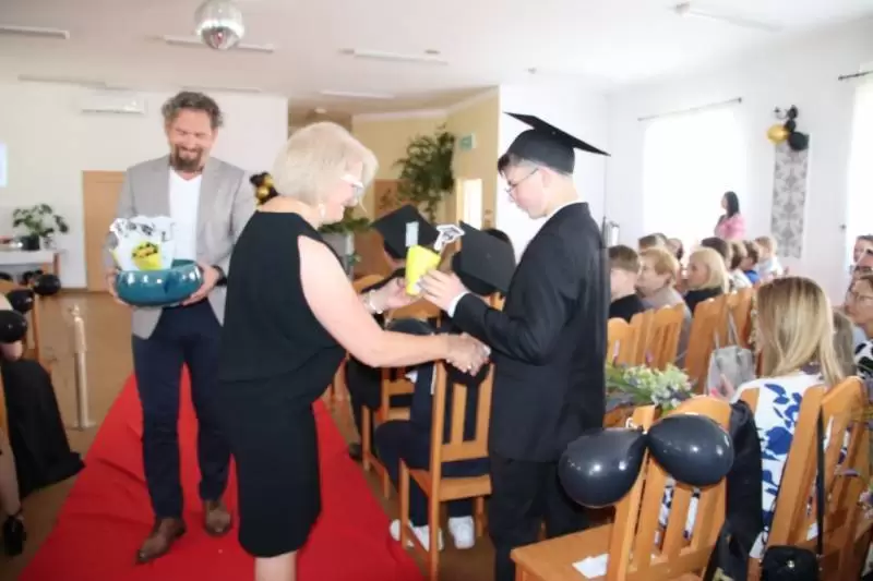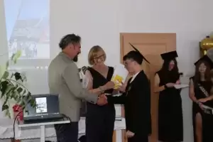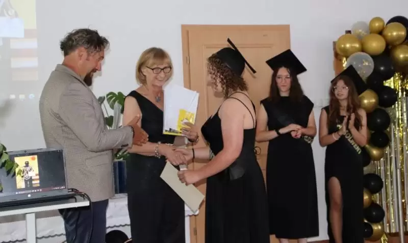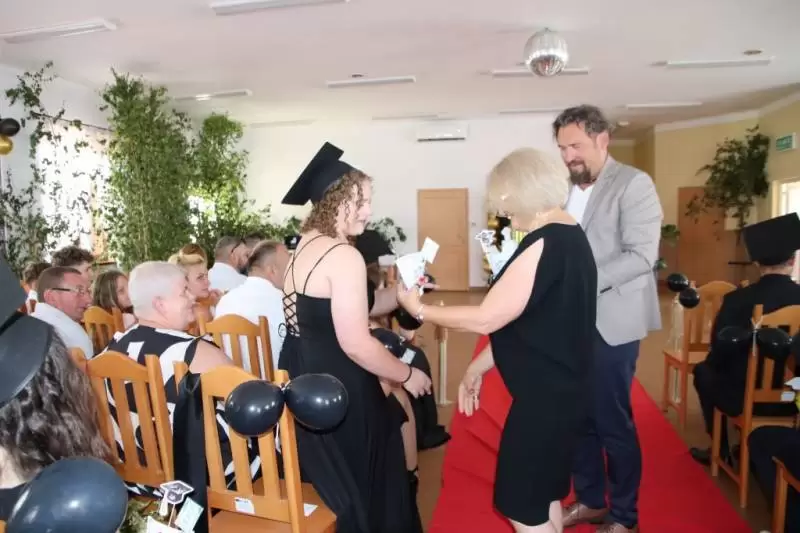Uroczystość rozpoczęła się od przedstawienia sylwetek uczniów, co w piękny sposób zrobiła wychowawczyni klasy Lucyna Filończyk. Dzięki temu mogliśmy bliżej poznać każdego z absolwentów, nie tylko przez pryzmat osiągnięć, ale także ich pasji, cech charakteru i wspólnych chwil spędzonych w murach szkoły.
