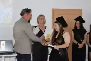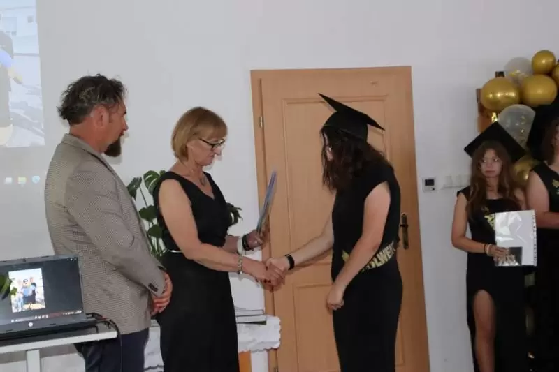 Na zakończenie głos zabrała również Dyrektor Szkoły Dorota Byra, która pogratulowała uczniom ukończenia ważnego etapu edukacji oraz życzyła im odwagi i wiary w siebie na kolejnych ścieżkach życia akcentując, że drzwi szkoły są dla uczniów zawsze otwarte.