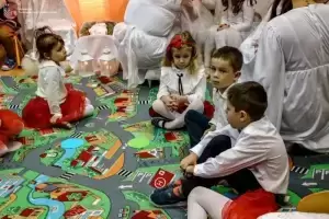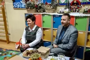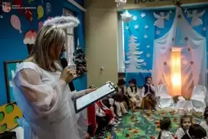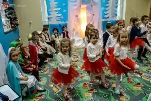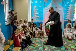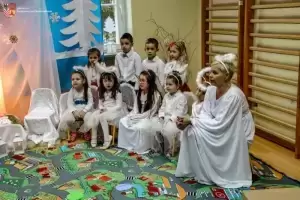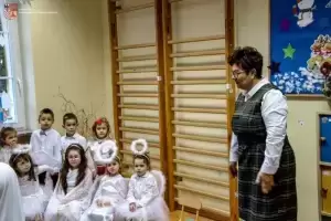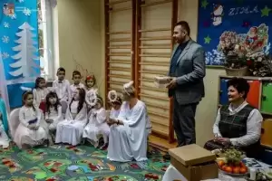Z kolei wójt Wojciech Płaziuk złożył serdeczne życzenia świąteczne, a w ramach podziękowania obdarował dzieci słodkimi upominkami. Przedszkolaki natomiast odwdzięczyły się dyrekcji i gościom wręczając im specjalnie przygotowane na tę okazję kartki świąteczne.
