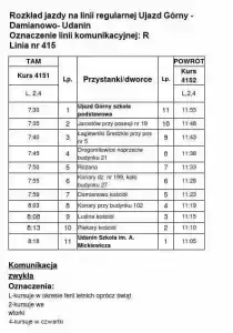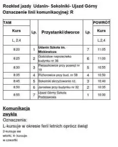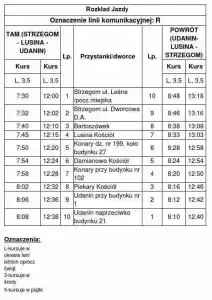 1) Strzegom - Udanin - 2 kursy w środy i 2 kursy w piątki od dnia 17.07.2019 r. - zgodnie z załączonym rozkładem jazdy