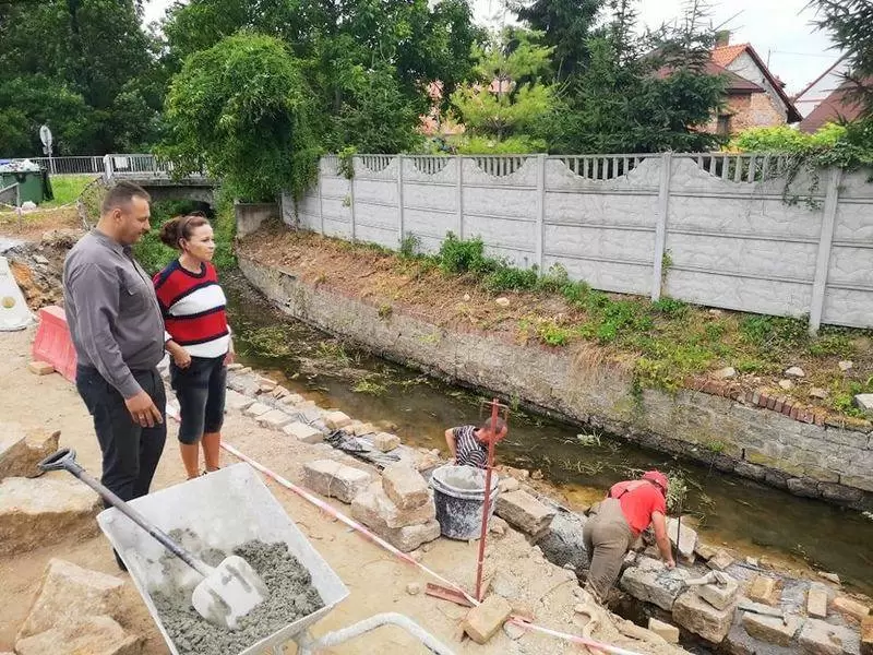 Remont murów oporowych na rzece w Ujeździe Górnym