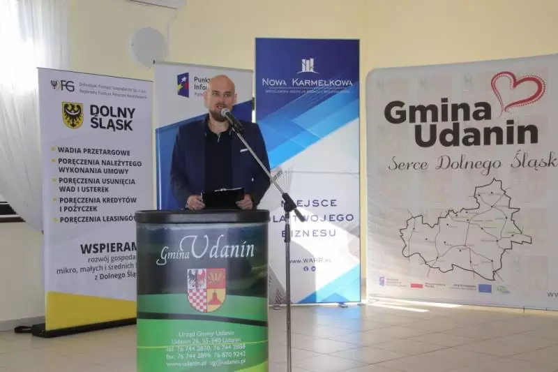 Spotkanie otworzył wójt Gminy Udanin Wojciech Płaziuk zapraszając gości do współpracy, zaprezentował działalność Gminy Udanin oraz tereny inwestycyjne leżące na jej terenie i zarys formy spotkania. Zakres merytoryczny omówił Jerzy Michalak przedstawiciel UMWD Dyrektor Departamentu Rozwoju Aglomeracji.
