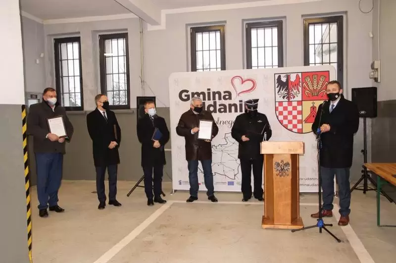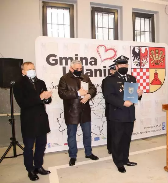 W remizie Ochotniczej Straży Pożarnej w Udaninie odbyła się dziś uroczystość przekazania sprzętu i wyposażenia pożarniczego dla jednostek OSP z terenu gminy Udanin, zakupionego w ramach dwóch projektów: dotyczących doposażenia jednostek OSP z terenu Gminy w roku 2020 oraz doposażenia jednostki OSP Udanin w sprzęt ratownictwa technicznego współfinansowanych ze środków Ministerstwa Sprawiedliwości w ramach Funduszu Pomocy Pokrzywdzonym oraz Pomocy Postpenitencjarnej – Funduszu Sprawiedliwości.
