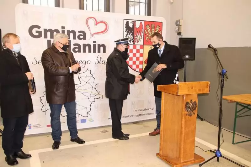 Dzięki wsparciu z Funduszu Sprawiedliwości strażacy OSP z gminy Udanin otrzymali specjalistyczny sprzęt pożarniczy. Podczas uroczystości wręczono gratulacje i przekazano sprzęt o łącznej wartości 302.657,33 zł, z czego dofinansowanie z Ministerstwa Sprawiedliwości wyniosło 293.298,56 zł, przy wkładzie własnym gminy Udanin w wysokości 9.358,77 zł.