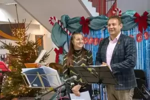 Niezwykła świąteczna atmosfera oraz moc atrakcji – tak można podsumować niedzielny Gminny Jarmark Bożonarodzeniowy, który odbył się w Szkole Podstawowej w Udaninie. Wydarzenie otworzył wójt Gminy Udanin Wojciech Płaziuk wraz z zastępcą dyr. SP Udanin Małgorzatą Rachwalską.