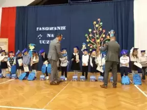 Zanim uczniowie zostali przyjęci do grona społeczności szkolnej, musieli wykazać się już zdobytą wiedzą. Gotowi, odświętnie ubrani i bardzo przejęci pokazywali swoje umiejętności. Pięknie śpiewali piosenki, recytowali wiersze i z zaangażowaniem odpowiadali na postawione przez panią dyrektor Joannę Dumicz pytania. Po zakończonej prezentacji zgodnie stwierdzono, iż wszystkie dzieci wspaniale zdały egzamin i zasługują na przyjęcie ich do grona pełnoprawnych członków społeczności szkolnej. Wówczas nastąpił doniosły moment uroczystego ślubowania.