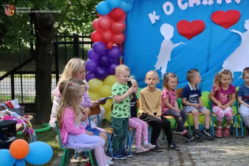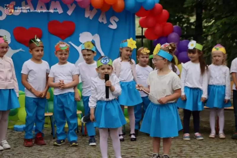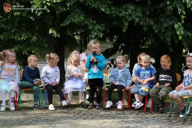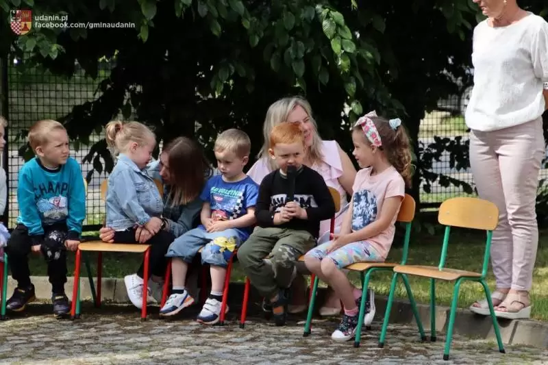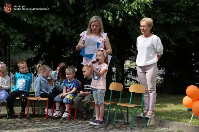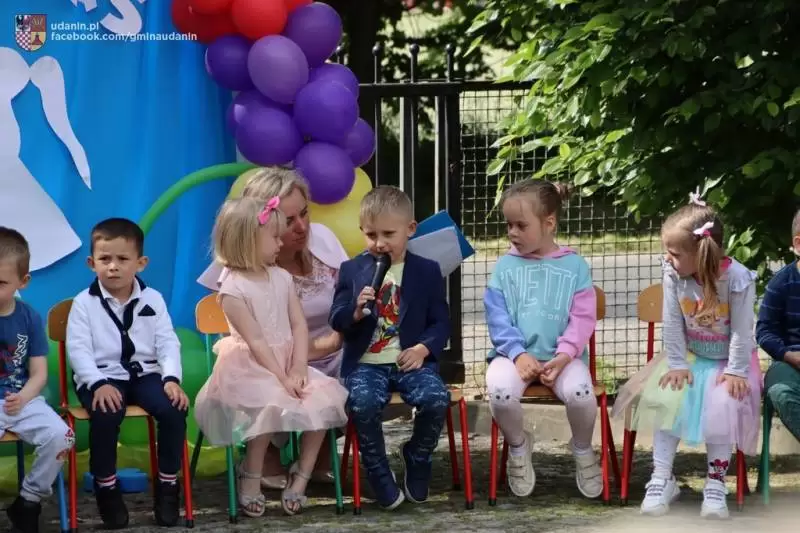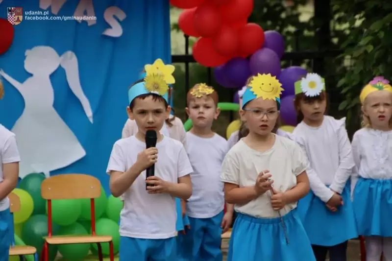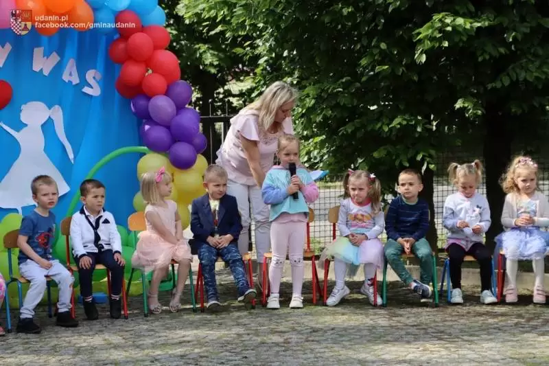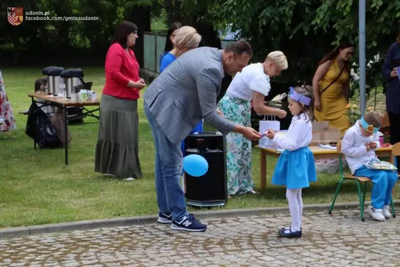 Wójt Gminy Udanin podkreślił, że dzięki świętom na przełomie maja i czerwca mocno docenia się rodzinę i należy pamiętać, że to ona jest najważniejsza. Podziękował dzieciom za wspaniałe występy i przekazał słodkie upominki.