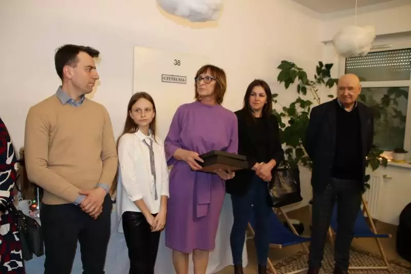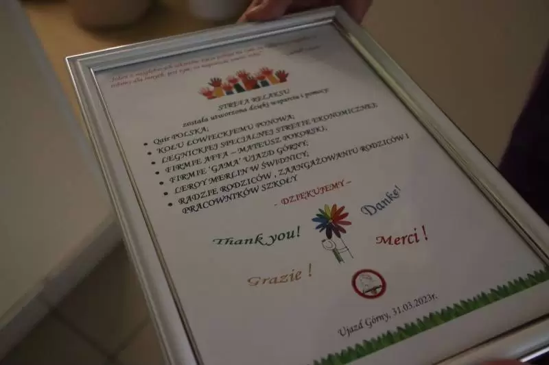 Podczas otwarcia Pani Dyrektor złożyła serdeczne podziękowania na ręce Instytucji, Firm i osób zaangażowanych w utworzenie tego miejsca. Strefa Relaksu powstała dzięki wsparciu i pomocy: