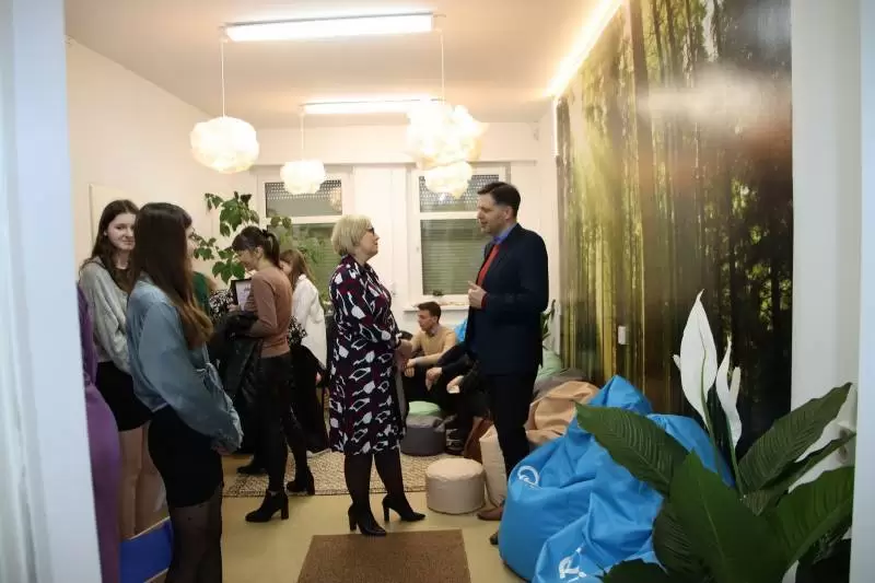 Przyciemnione miejsce, chmury na niebie, a w tle las… leżysz na wygodnym leżaku lub pufie i wsłuchujesz się w uspokajający szum wody i odgłosy ptaków." - Brzmi jak opis cichego, spokojnego miejsca? Nic bardziej mylnego! To pokój w centrum szkoły!