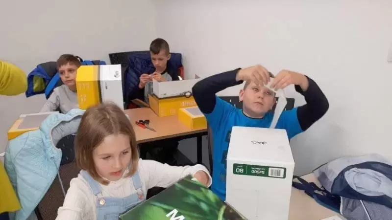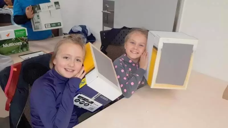 Zajęcia prowadzili: Anna Jagiełło i Michał Niechwiej. Wykładowcy w interesujący sposób opowiedzieli historię fotografii, przedstawili starodawne aparaty fotograficzne i omówili sposób ich działania. Podczas warsztatów dzieci samodzielnie wykonały z kartonu camerę obscura. Zabawy było co niemiara. Kamery działały bez zarzutu.