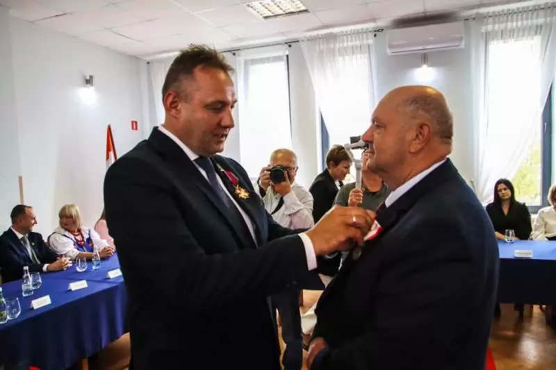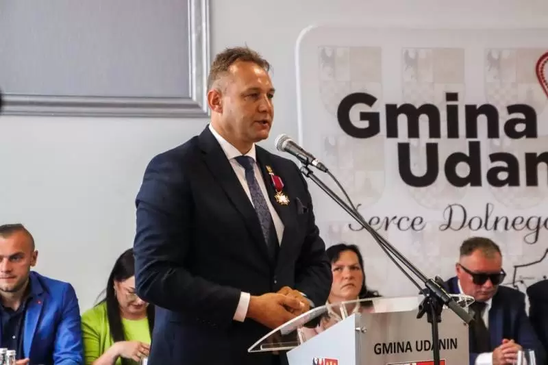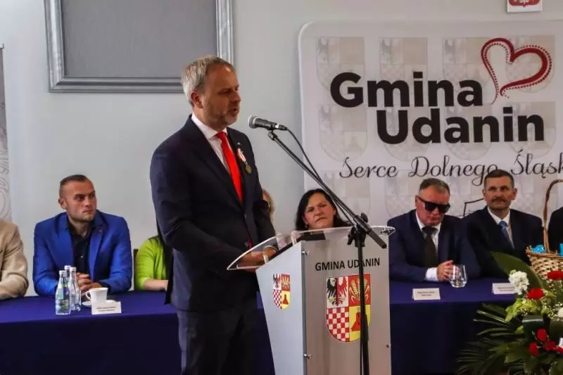 Uroczyste odznaczenia rozpoczęto od tytułu „Honorowy Obywatel Gminy Udanin”, którym odznaczono Posła na Sejm RP Pawła Hreniaka doceniając jego wkład i zaangażowanie w rozwój Gminy.