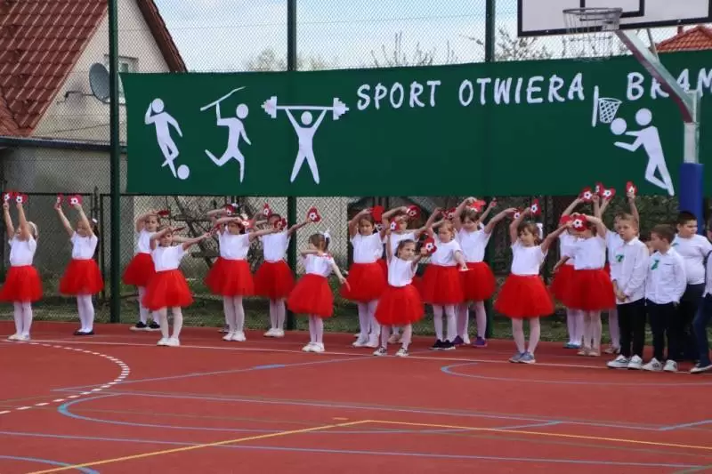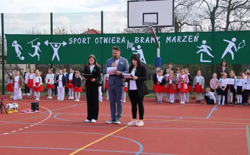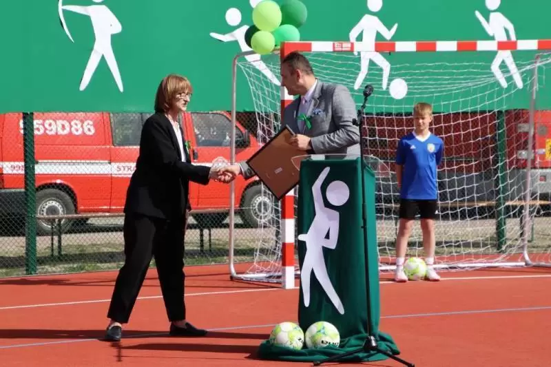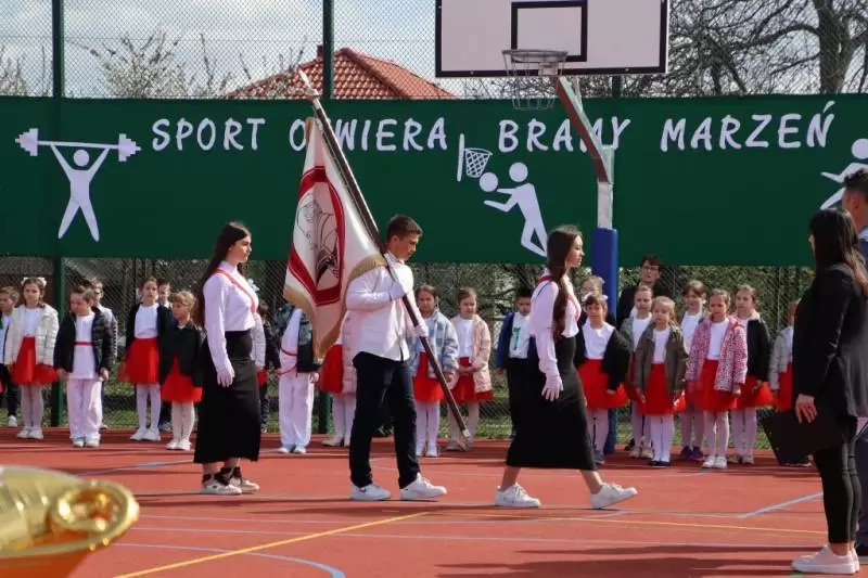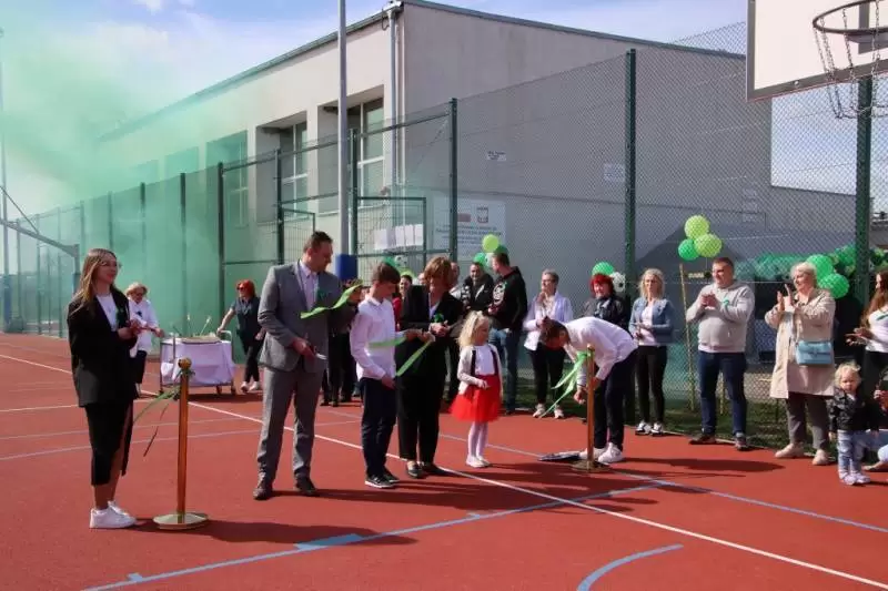 Podczas ceremonii otwarcia podkreślono rolę nowego obiektu sportowego, a także dokonano podsumowania inwestycji. Mówcy wspominali czasy sprzed trzydziestu lat, kiedy to na starym asfalcie wówczas ich rówieśnicy zdzierali kolana. Teraz boisko prezentuje się nowocześnie i spełnia wszystkie potrzeby uczniów i mieszkańców gminy.