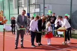 W piątkowe przedpołudnie, 5 kwietnia 2024 roku, odbyło się oficjalne otwarcie boiska wielofunkcyjnego wraz z bieżnią lekkoatletyczną przy Szkole Podstawowej im. Jana Pawła II w Ujeździe Górnym.