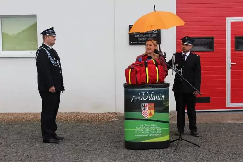 Uroczystość poprzedził przejazd samochodów OSP przez gminę. W tym ważnym wydarzeniu udział wzięli: wójt gminy Udanin Pan Wojciech Płaziuk, Minister Pani Beata Kempa, Pani Elżbieta Witek - poseł na Sejm RP, Dolnośląski Komendant Wojewódzki PSP Pan Adam Konieczny, Komendant Powiatowy PSP Pan Marek Wawrejko, Prezes Oddziału Gminnego ZOSP RP - Pan Bogdan Wilczak, Komendant Gminnego ZOSP RP Pan Lesław Wasylów oraz Prezesi i druhowie OSP Gminy Udanin, Starosta Powiatu Średzkiego Pan Krzysztof Szałankiewicz, Kierownik KRUS w Środzie Śląskiej Pani Elżbieta Musiał, Wójtowie Gminy Udanin poprzednich kadencji Pani Teresa Olkiewicz oraz Pan Stanisław Krzyszczuk, Radni Powiatowi Pani Małgorzata Rachwalska oraz Pan Marek Majerowski.