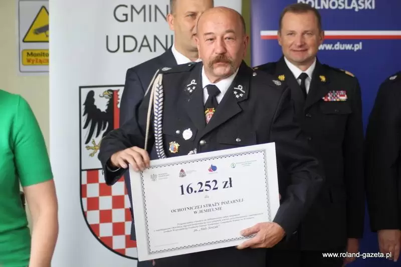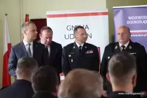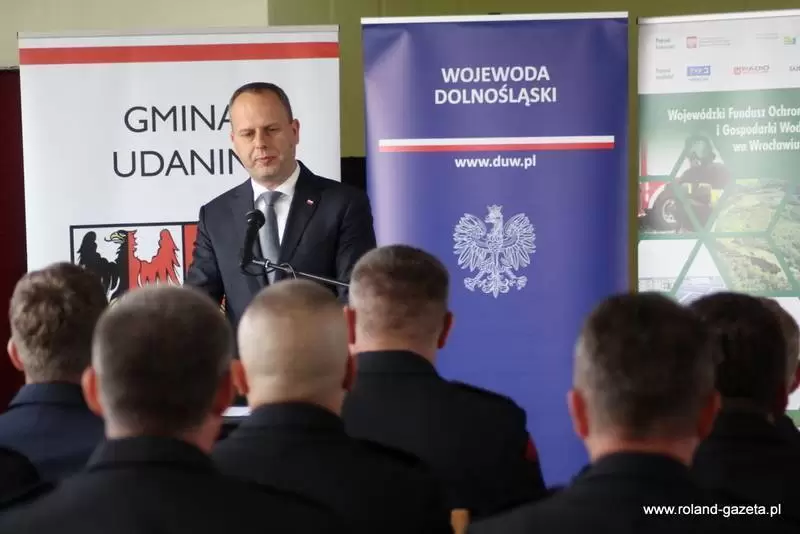 W uroczystości udział wzięli m.in. Wojewoda Dolnośląski Paweł Hreniak, Prezes Wojewódzkiego Funduszu Ochrony Środowiska i Gospodarki Wodnej we Wrocławiu Łukasz Kasztelowicz, Dolnośląski Komendant Wojewódzki Straży Pożarnej Adam Konieczny i Wójt Gminy Udanin Wojciech Płaziuk.