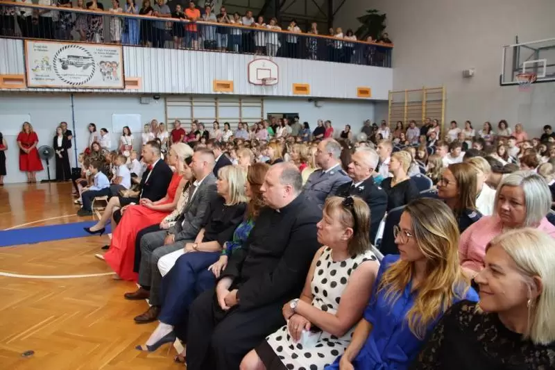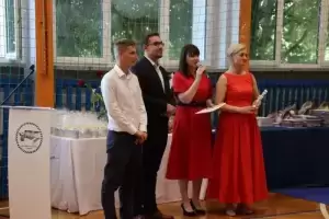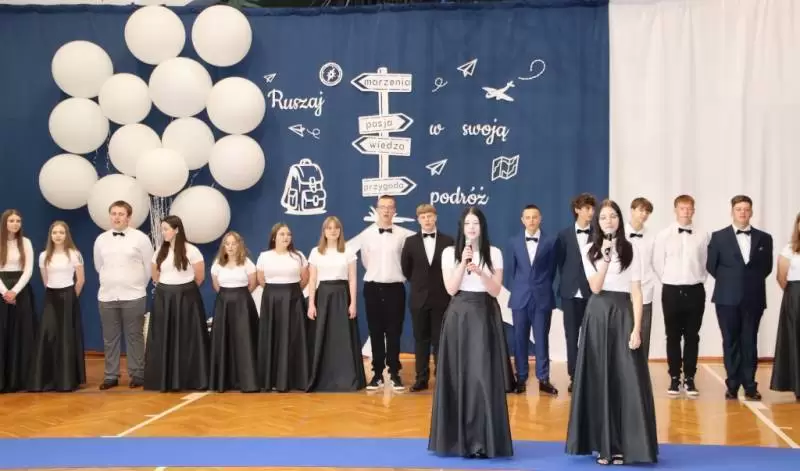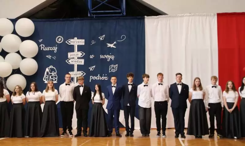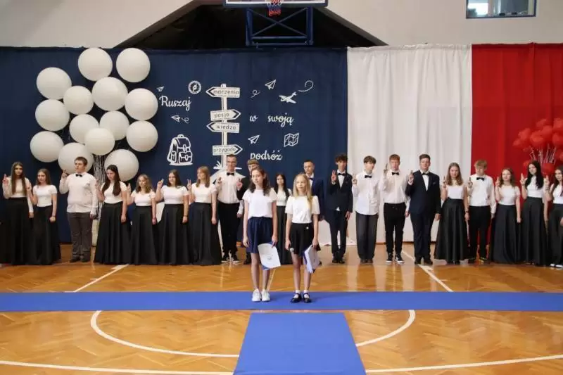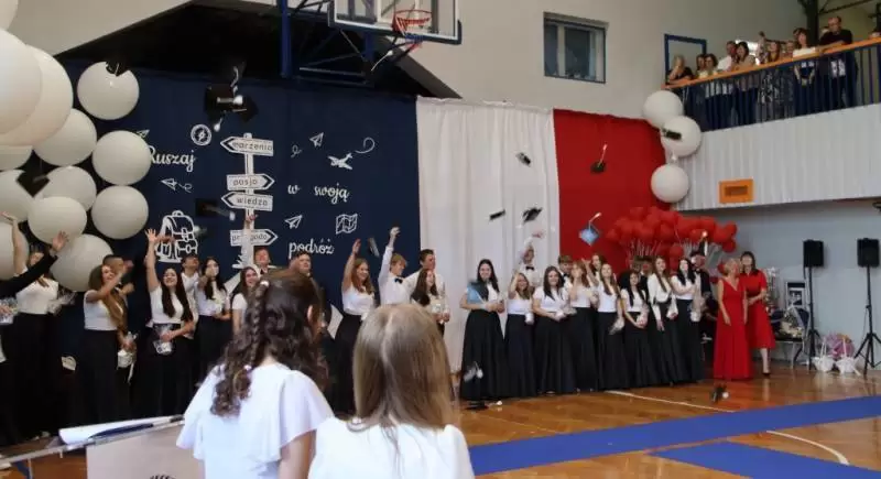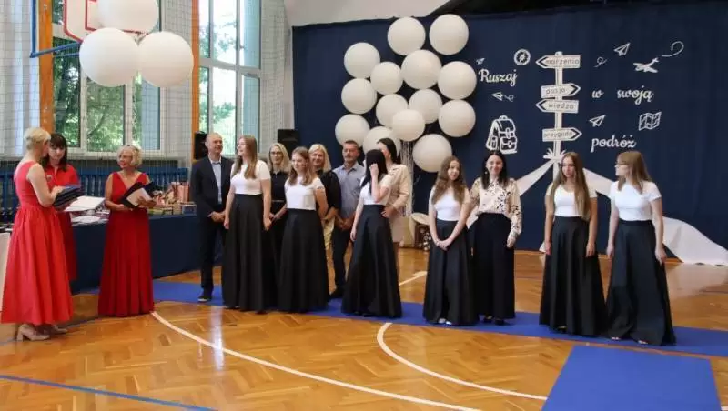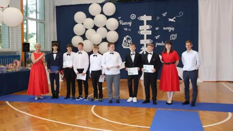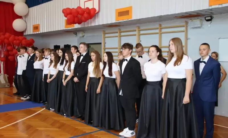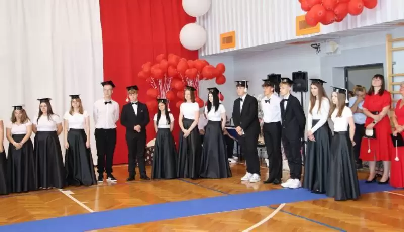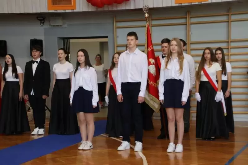 Podczas uroczystego apelu uczniowie 8 klas zaprezentowali swoje talenty artystyczne, które zachwyciły wszystkich obecnych. Był tez wspaniłały Polonez, który zrobił na wszystkich ogromne wrażenie. Wręczono liczne nagrody, wyróżnienia i świadectwa z czerwonym paskiem.