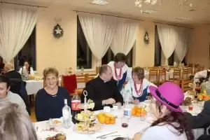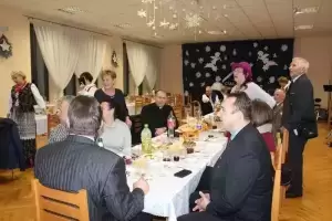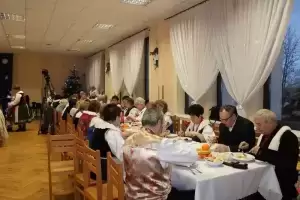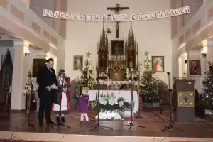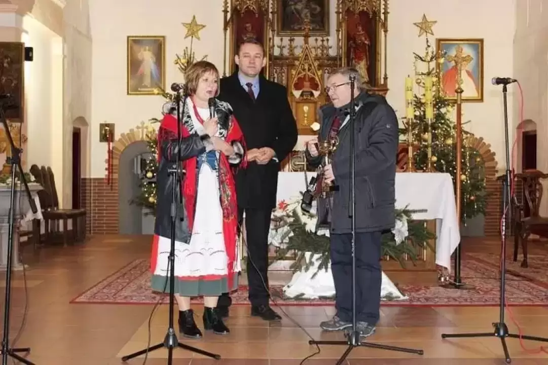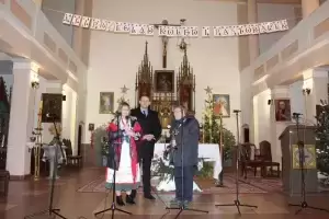 Pani prezes wyraziła także zadowolenie z faktu, że do Udanina przyjechało dużo barwnych zespołów z różnych stron Dolnego Śląska - witając wszystkich przybyłych mieszkańców gminy Udanin, w tym zaproszonych gości: wójta gminy Udanin Wojciecha Płaziuka, ksiądza Marka Jodko proboszcza parafii św. Jana Chrzciciela w Piekarach, który podczas mszy św. podziękował za kultywowanie tak pięknej idei przeżywania okresu Bożego Narodzenia, jaką jest Przegląd Kolęd i Pastorałek, radnych, sołtysów oraz prezesa LGD „Szlakiem Granitu” Andrzeja Suktę.