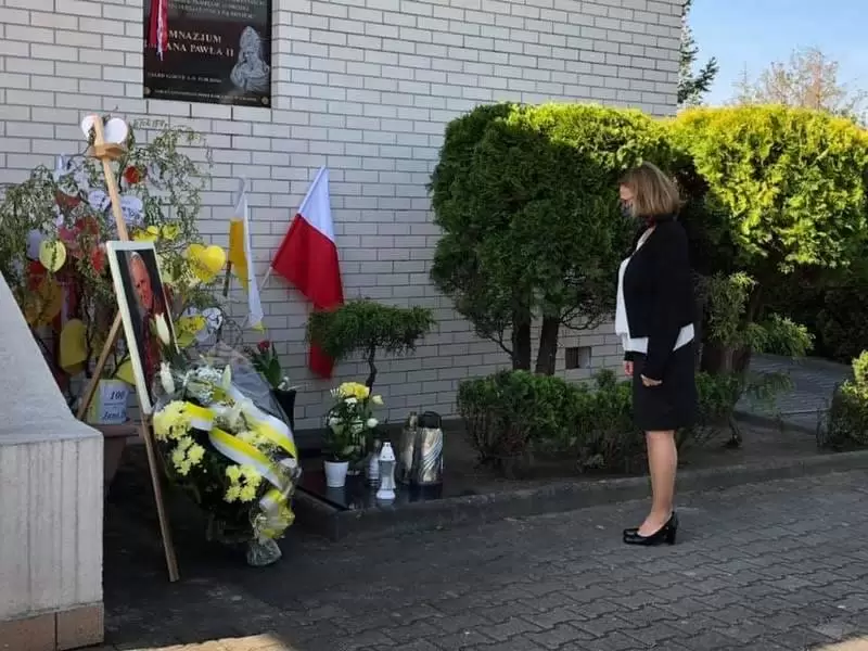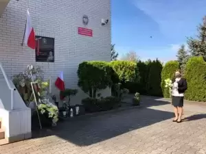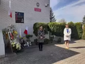 Dziś odbyło się uroczyste złożenie kwiatów i zapalenie zniczy pod tablicą pamiątkową przez wójta gminy Udanin Wojciecha Płaziuka, dyrektora SP w Ujeździe Górnym Dorotę Byrę, przewodniczącą szkoły Nikolę Słociak, przedstawiciela grona pedagogicznego Beatę Chomąt oraz przedstawiciela Rady Rodziców Jolantę Nowak.