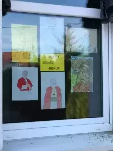 Najmłodsi uczniowie do tego pięknego wydarzenia przygotowania rozpoczęli już w styczniu. W każdej sali lekcyjnej powstały piękne tablice z wizerunkiem papieża Jana Pawła II i kąciki z fotografiami z jego życia. W tygodniu poprzedzającym to ważne wydarzenie, uczniowie z klas 0-3 pod kierunkiem swoich wychowawców podjęli działania zmierzające do uczczenia tego dnia. Odbyło się to drogą zdalną ze względu na sytuację pandemii panującą w naszym kraju.