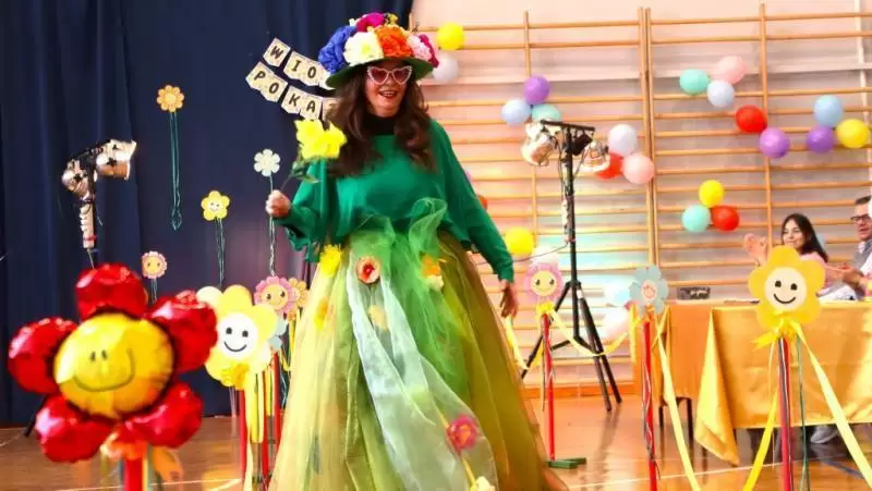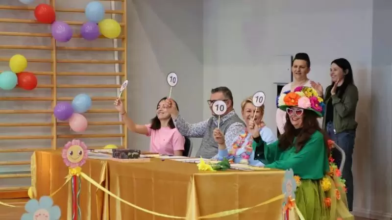 Szkoła Podstawowa w Udaninie zorganizowała pokaz mody, w którym każda klasa była ubrana w innym kolorze, co dodało wydarzeniu wiosennego i radosnego charakteru.