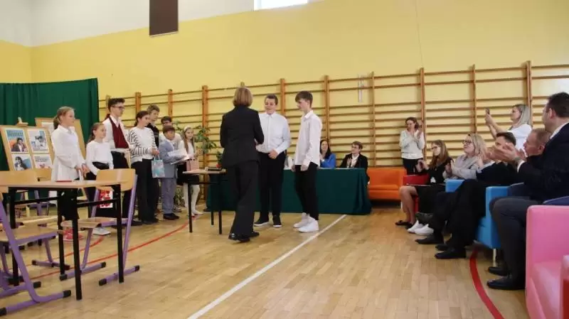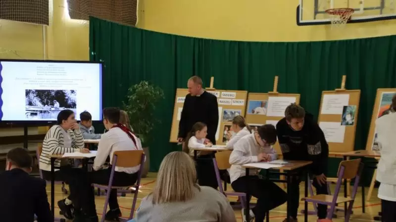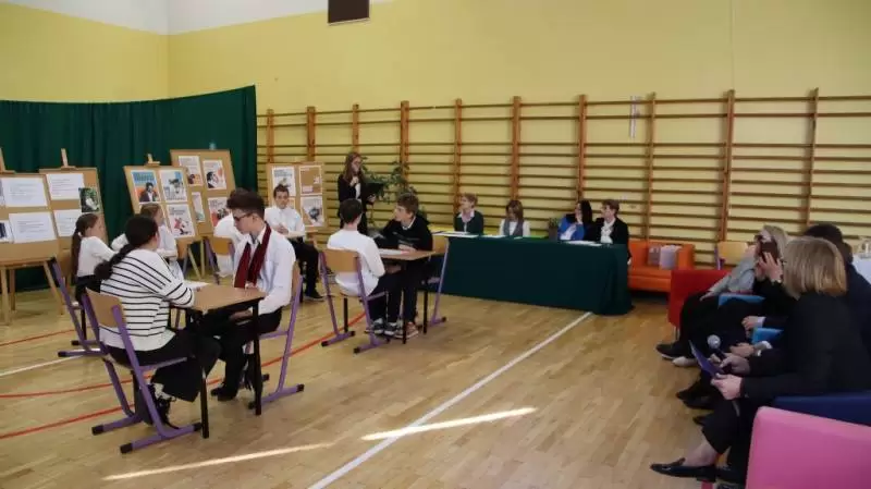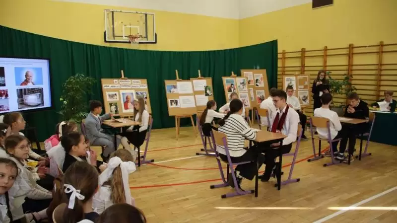 Po uroczystym apelu wszyscy udali się do sali gimnastycznej, aby uczestniczyć w konkursie wiedzy o Janie Pawle II przygotowanym przez młodzież szkolną pod okiem pedagogów. Konkurs wygrała reprezentacja VI klasy, II miejsce zajęła kl. V, a III miejsce przypadło kl. IV. Wójt Wojciech Płaziuk w drużynie wspólnie z panem Marcinem Malinowskim, odebrali symboliczne wyróżnienie.