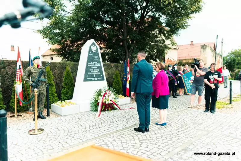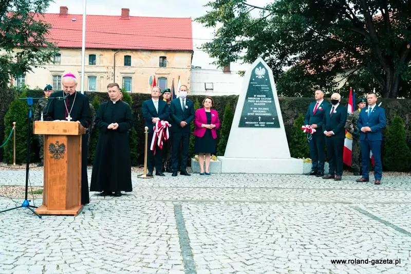 Po okolicznościowych przemówieniach nastąpił najważniejszy punkt uroczystości – odsłonięcie pomnika pamięci „Obrońcom Ojczyzny” oraz poświęcenie go przez ks. Biskupa Marka Mendyka. Został odczytany Apel Pamięci oraz oddana salwa honorowa kompanii wojskowej. Pod nowo odsłoniętym pomnikiem wieńce i wiązanki złożyli: przedstawiciele władz państwowych, rządu, parlamentu europejskiego, województwa dolnośląskiego, lokalnych, wojska, instytucji publicznych oraz państwowych.
