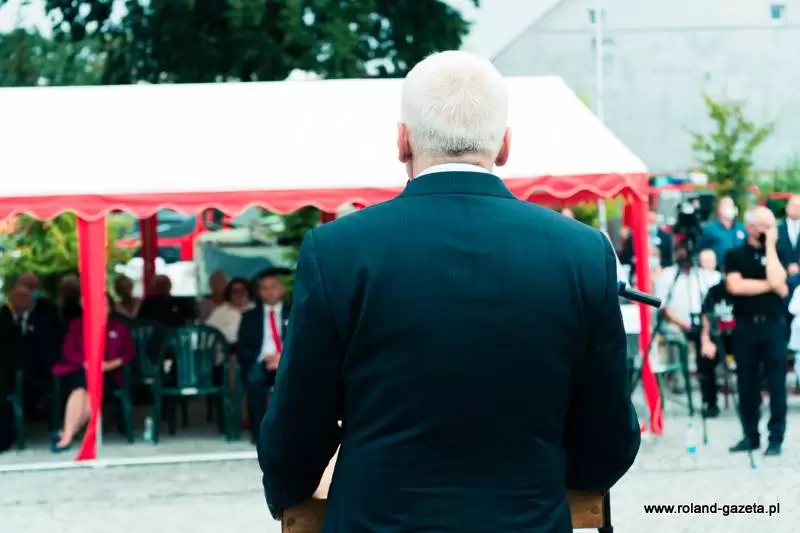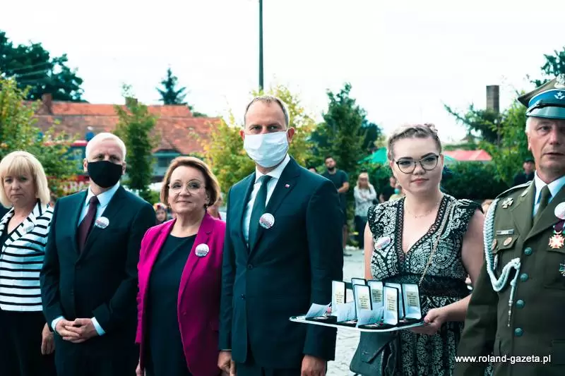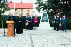 Podczas uroczystości przemówienie wygłosił wójt Gminy Udanin Wojciech Płaziuk „(…)To tu mam nadzieję przez kolejne lata będziemy się spotykać podczas uroczystości gminnych i świąt państwowych. Powołany komitet założycielski pod moim przewodnictwem może zameldować wykonanie zadania. Dlatego melduję wszystkim tu obecnym, że Pomnik jest przygotowany do uroczystego odsłonięcia.(…)”. Kolejno głos zabrali: Jarosław Obremski - Wojewoda Dolnośląski, Aneta Trela - dyrektor biura poselskiego Marszałka Sejmu Elżbiety Witek, Anna Zalewska – Poseł do Parlamentu Europejskiego, Paweł Hreniak – Poseł do Sejmu RP, Andrzej Jaroch – Przewodniczący Sejmiku Województwa Dolnośląskiego, Krzysztof Szałankiewicz – Starosta Powiatu Średzkiego oraz Bazyli Maliniak – były mieszkaniec gminy Udanin (m. Piekary), obecnie mieszkaniec Strzegomia.