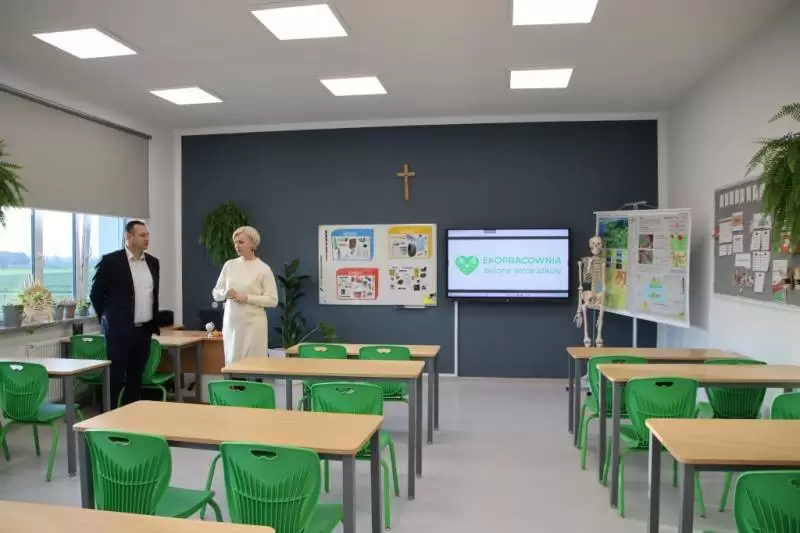 Ekopracownia nie tylko zdobi przestrzeń szkoły, ale także stanowi miejsce, gdzie uczniowie mogą zgłębiać tajniki przyrody i rozwijać swoją świadomość ekologiczną. Sala, w której znajduje się Ekopracownia, przeszła gruntowny remont, a następnie została wyposażona w nowoczesne urządzenia, sprzęt i materiały edukacyjne. Nowy monitor interaktywny, laptop, drukarka, nowoczesne meble, mikroskopy, zestawy modeli dotyczące energii odnawialnej - to tylko niektóre z nowości, które uczynią zajęcia bardziej atrakcyjnymi.