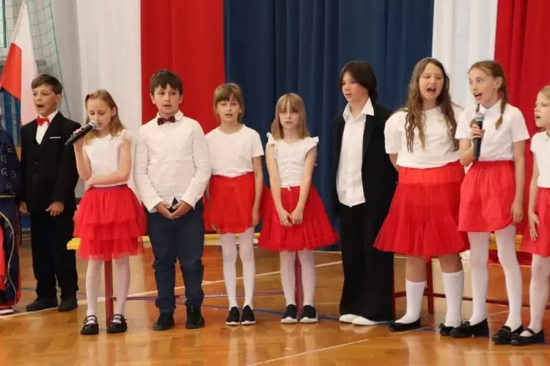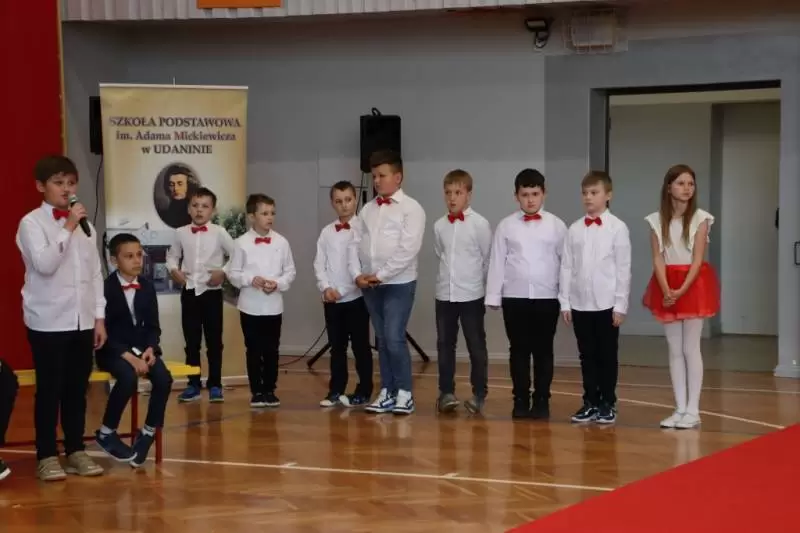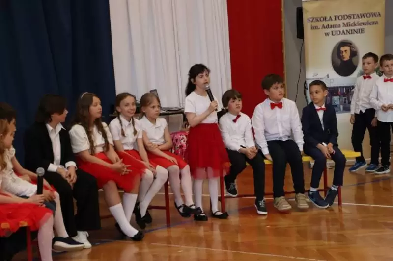 W poniedziałek (06.05.2024 r.) w Szkole Podstawowej im. Adama Mickiewicza w Udaninie odbył się apel z okazji Święta Narodowego Trzeciego Maja.