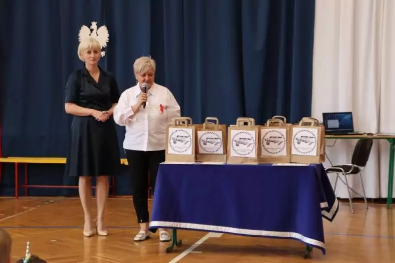 Podczas uroczystości przekazano nagrody w Konkursie "Moja Ojczyzna" dla kl. I-III. Dyrektor Joanna Dumicz oraz Pani Mirosława Babicka wręczyły nagrody dla zwycięzców.