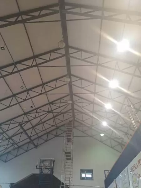 W sali gimnastycznej i w holu do niej prowadzącym zamontowane zostały nowe, energooszczędne lampy, które nie tylko piękniej wyglądają i doskonale oświetlają pomieszczenia, a zużyją jedynie 26% dotychczasowej ilości energii. Lampy zdemontowane z sali gimnastycznej oraz bloku sportowego pobierały moc - 12792 (W). Obecne lampy to - 3361 (W).