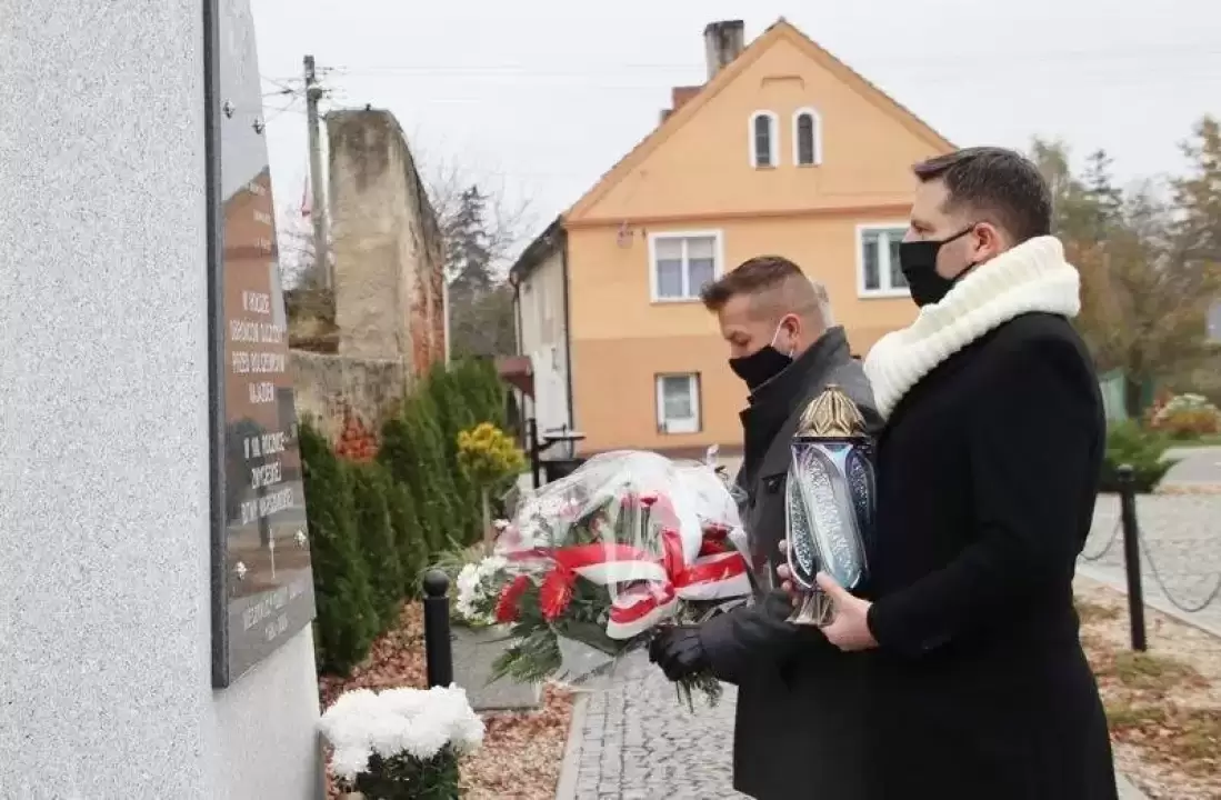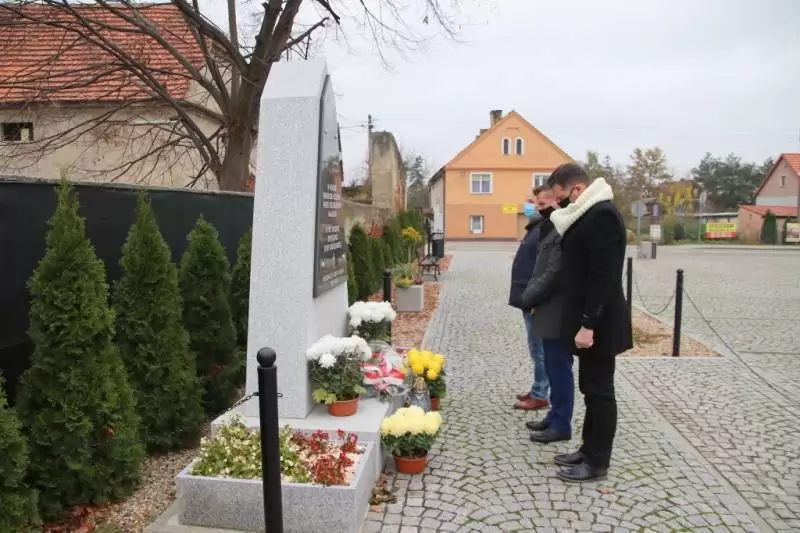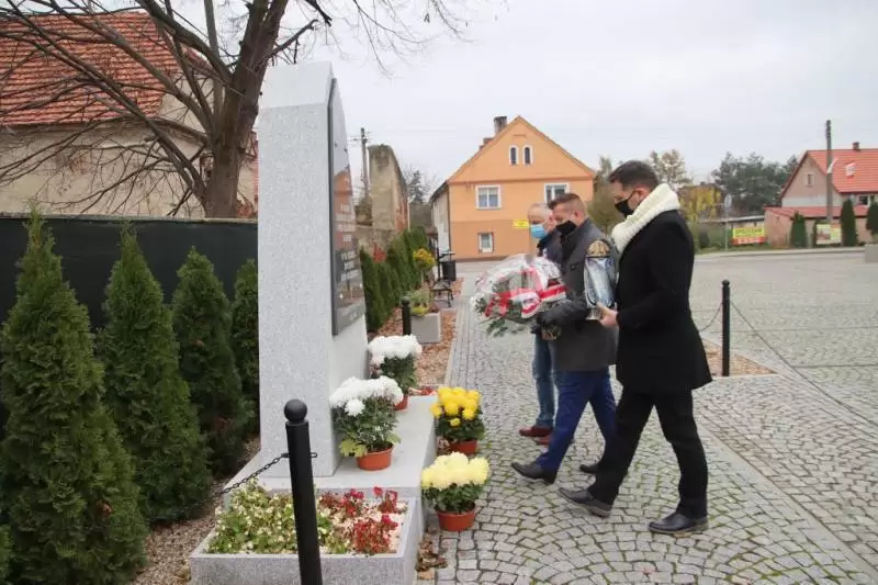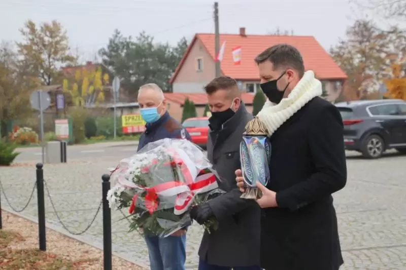Po uroczystej modlitwie za Ojczyznę i walczących o Jej Niepodległość delegacja przeszła pod pomnik Obrońców Ojczyzny, gdzie złożyła kwiaty i zapaliła znicz. Miłym akcentem ze strony mieszkańców gminy było wspólne odśpiewanie hymnu.