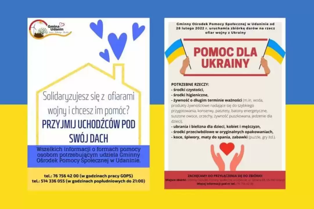 Ponadto udaniński GOPS prowadzi zbiórkę darów na rzecz ofiar wojny.