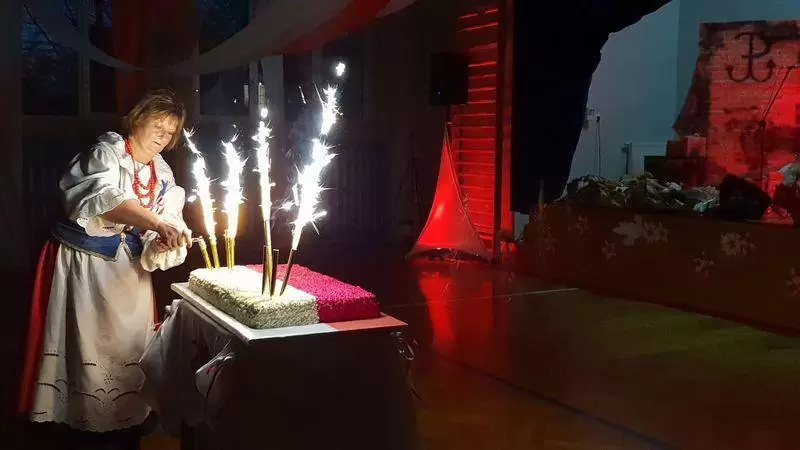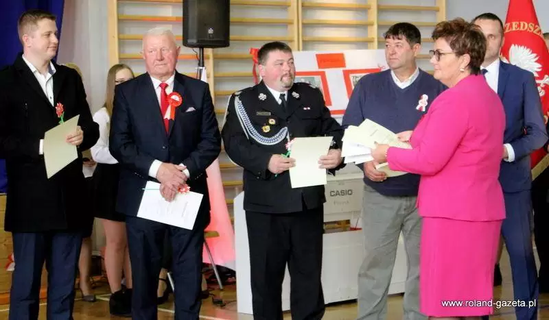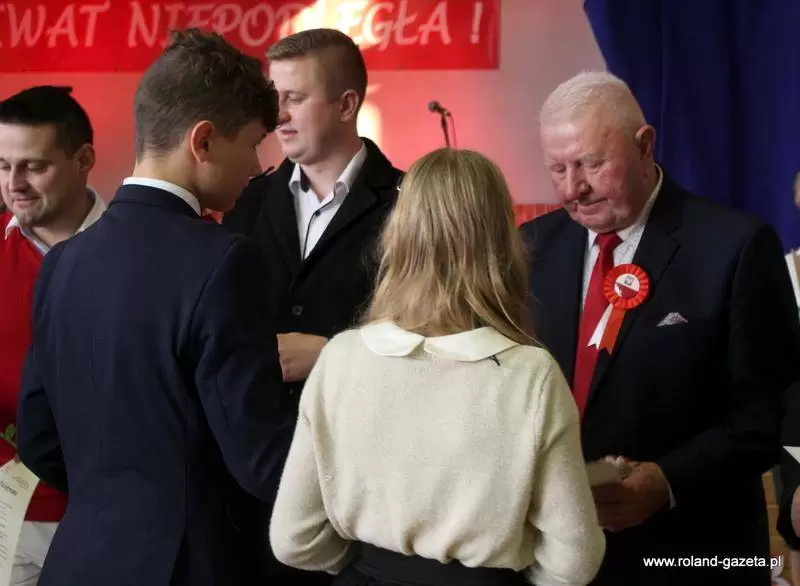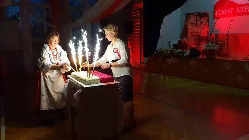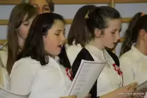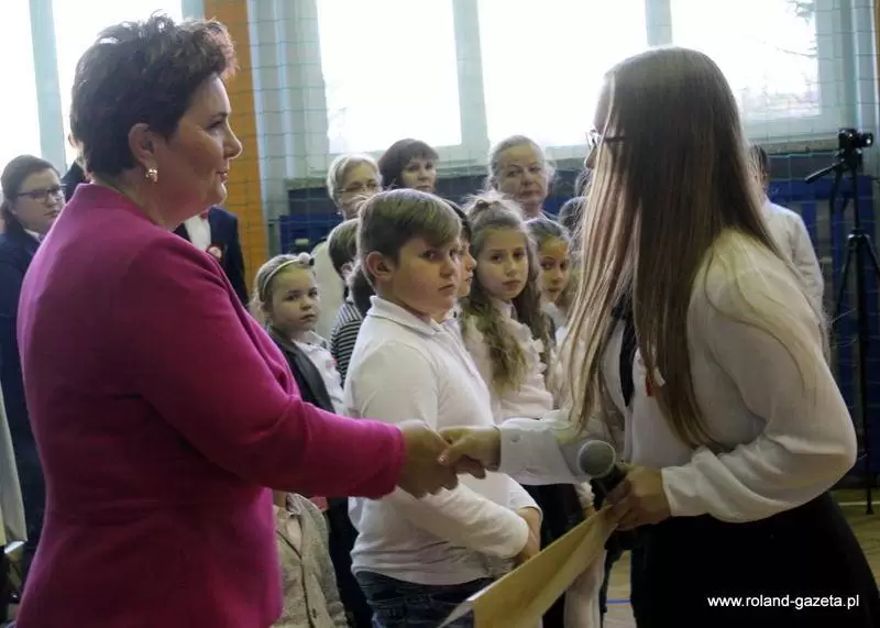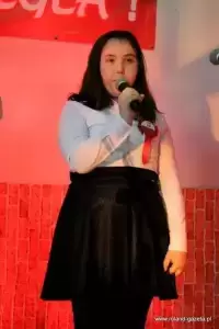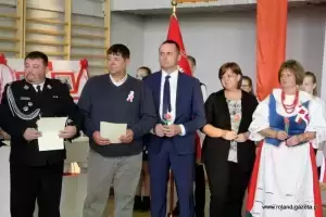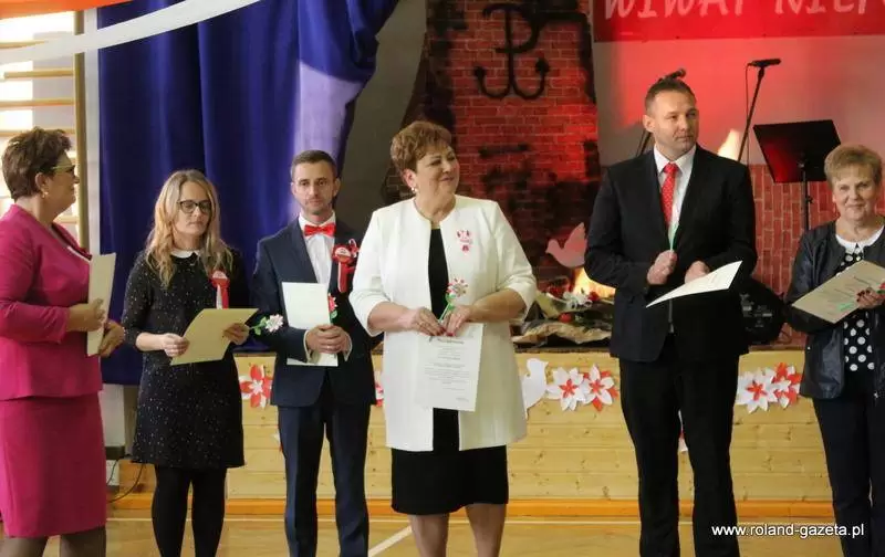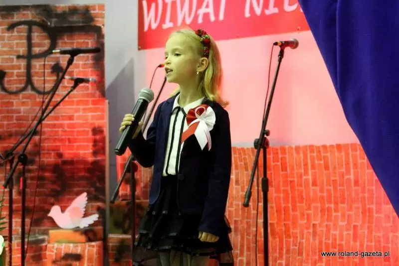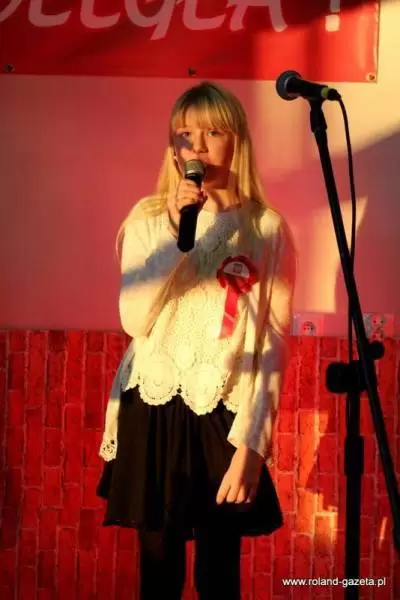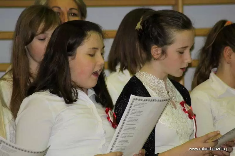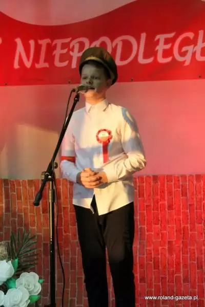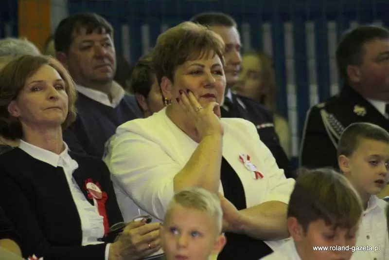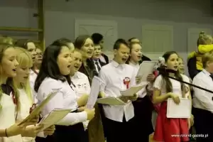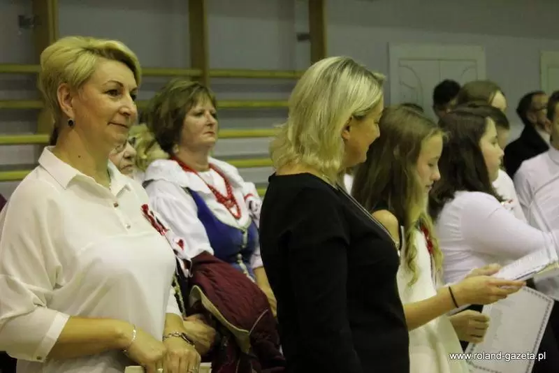 Pięknie wyrecytowane wiersze przez uczniów z klasy VIb przygotowane z panią Moniką Cieślicką. Pieśni o Polsce zaśpiewane przez solistów: Elizę Łabędzką. Hannę Chohurę, Marcela Stolarskiego, najmłodszą uczestniczkę Hannę Pichowicz, Marcina Malinowskiego, rodzinę Kulpińskich i zespół ludowy Cicha Woda z Udanina sprawiły, że na niejednym policzku pojawiła się spływająca łza. Emocje towarzyszyły całej imprezie. Piękna dekoracja, efekty specjalne, biało-czerwony tort ufundowany przez panie: Małgorzatę Kwiatek i Małgorzatę Jurek, który wjechał na salę po zakończonych występach i spektakularny pokaz sztucznych ogni zakończony złotym deszczem, wprowadziły wszystkich w niemały zachwyt. Nie obyło się bez tradycyjnego, wspólnego śpiewania. Uczniowie z wielkim entuzjazmem prowadzili śpiewy, do których włączyli się wszyscy zgromadzeni. Sala rozbrzmiewała odważnym, pięknym śpiewem. Razem zaśpiewaliśmy dla Niepodległej!