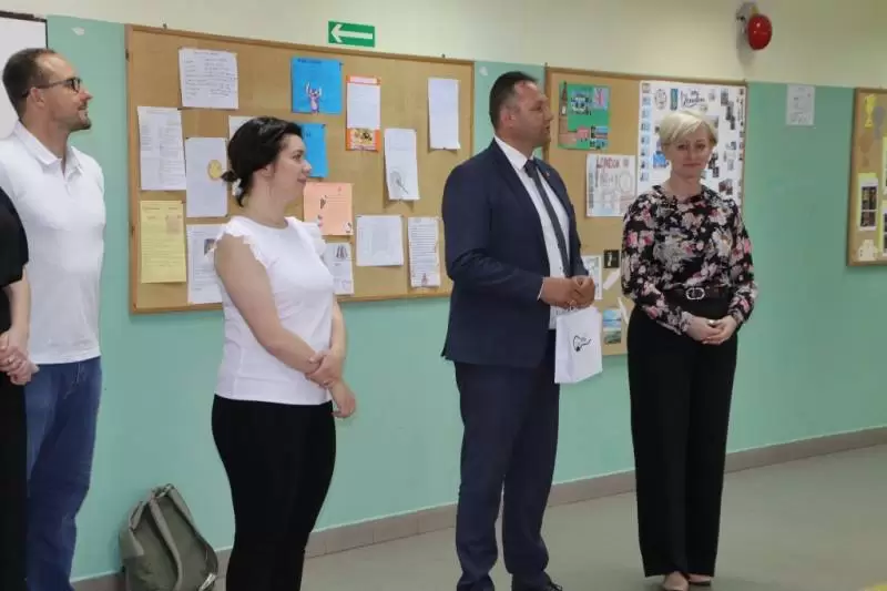 Włodarz gminy przekazał symboliczne długopisy gminne, które zostaną wręczone uczniom po egzaminie. - Powodzenia podczas egzaminu, pamiętajcie by podchodzić spokojnie i bezstresowo do każdego zadania, a gdy napotkacie trudności, powróćcie do problematycznego zagadnienia. To pierwszy tak ważny sprawdzian wiedzy na Waszej drodze kariery naukowej i zawodowej. Wierzę, że każdy w Was da z siebie 100%. Przysłowiowego "połamania pióra" moi drodzy! - życzył wójt.