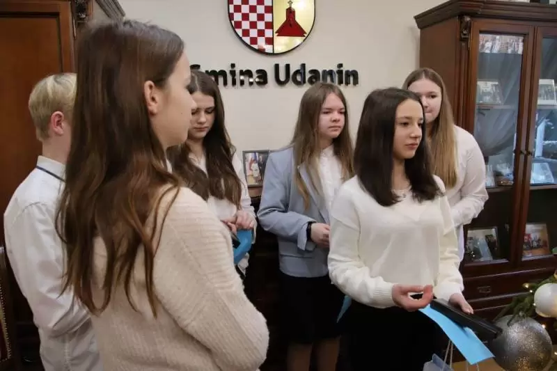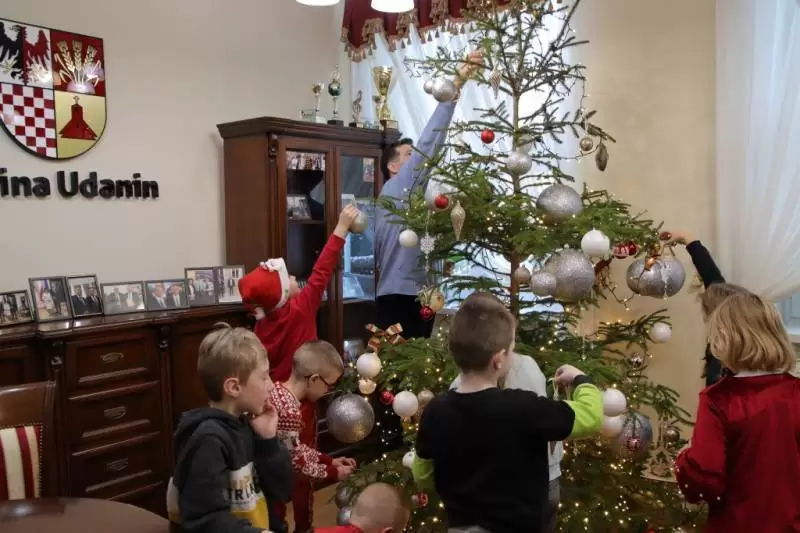 Coroczną tradycją stało się wspólne ubieranie choinki w gabinecie wójta Gminy Udanin Wojciecha Płaziuka.