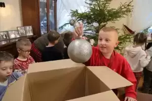 19.12.2022 r. uczniowie kl. I Szkoły Podstawowej im. Adama Mickiewicza w Udaninie, wspólnie z wychowawczynią Panią Mirosławą Babicką, pięknie przystroili pachnące drzewko. W urzędzie zrobiło się świątecznie, a to nie tylko zasługa pierwszaków! Podczas ubierania Koło Misyjne pod przewodnictwem Pani Violetty Leńskiej wprowadziło nas w magię Świąt Bożego Narodzenia śpiewając najpopularniejsze polskie kolędy.