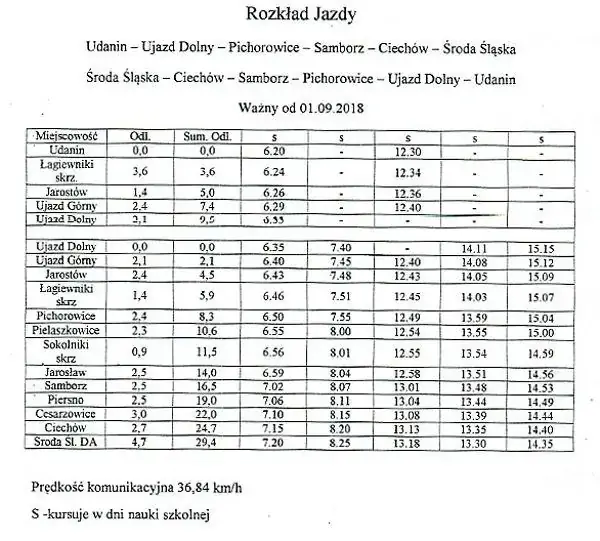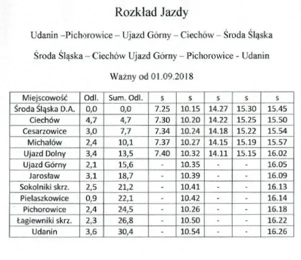 - Udanin - Ujazd Górny - Środa Śląska, którą będzie obsługiwał przewoźnik Stefan Ślusarski, Transport Osobowo-Towarowy z Malczyc.