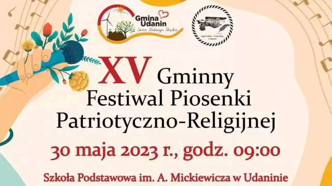 Gmina Udanin serdecznie zaprasza dzieci i młodzież z terenu gminy do prezentacji talentów wokalnych podczas jubileuszowej, XV edycji Gminnego Festiwalu Piosenki Patriotyczno-Religijnej.