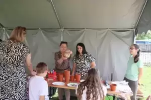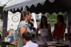 Niedzielne wydarzenie nie zamknęło się tylko w chłodnych murach kościelnych, teren przy obiekcie został dobrze zagospodarowany. Przybyli mieszkańcy okolicznych miejscowości mogli skorzystać z darmowego poczęstunku, zakupić produkty rękodzielnicze lub pyszne, domowe ciasto, wziąć udział w pokazie OSP KSRG Udanin, a także przygotować swoje własne ceramiczne doniczki.