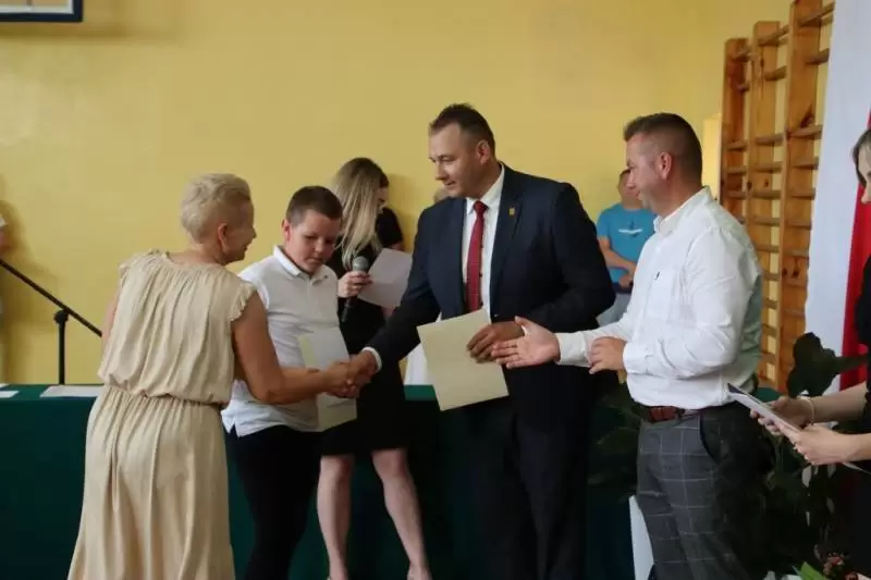 Również w tej szkole nie mogło zabraknąć wyróżnień wręczonych przez Włodarza Gminy. Dla najbardziej uzdolnionych dzieci i młodzieży zostały wręczone przez Wójta Gminy Udanin Wojciecha Płaziuka Dyplomy uznania oraz nagrody w formie bonu. Nagroda Wójta w tym roku została przyznana za uzyskanie średniej ocen powyżej 5,20. W zależności od wysokości średniej uczniowie otrzymali zróżnicowane wartością bony do sklepu Decathlon. Wójt Wojciech Płaziuk, wspólnie z przewodniczącym Rady Gminy Udanin Januszem Strzeleckim, wręczył 10 nagród. Najlepsi z najlepszych to: