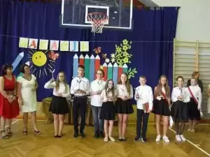 Rozpoczynając apel życzenia wspaniałych wakacji oraz podziękowanie za współpracę złożyły dyrektor Bożena Basa i wójt Teresa Olkiewicz. Wyróżniający się uczniowie otrzymali z rąk wychowawców świadectwa z czerwonym paskiem i nagrody książkowe. Uczniowie z najwyższą w szkole średnią: Aleksandra Mazur, Maciej Kozłowski, Dagmara Baszak, Kinga Cencelewicz, Maja Mikła, Eliza Łabędzka, Hanna Chohura, Marcel Stolarski, Laura Górecka, Klaudia Biernat, Zuzanna Cieplik, zostali nagrodzeni dyplomami, a ich rodzice Listami Gratulacyjnymi. Wójt gminy Udanin wyróżniła prymusów, wręczając im nowoczesne tablety. Również dzieci utalentowane: Laura Górecka, Wiktoria Piwowarska, Marcel Stolarski, Dawid Senczyna, Kinga Cencelewicz, Jacek Kowalczyk, Hanna Chohura i Eliza Łabędzka, zostały uhonorowane statuetkami Super Talent.