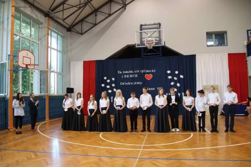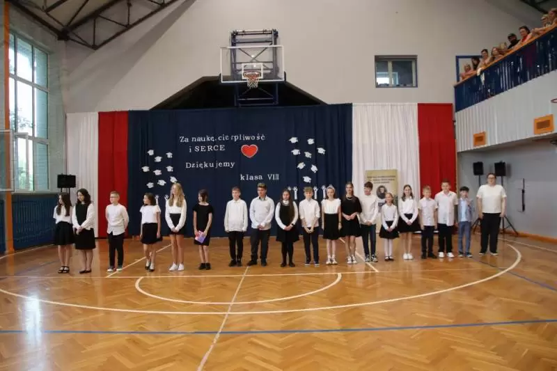 W akademii podsumowującej pracę i osiągnięcia uczniów wzięła udział społeczność szkolna, rodzice uczniów, nauczyciele i dyrekcja szkoły oraz zaproszeni goście m.in. Asystent Ministra Cyfryzacji Janusza Cieszyńskiego, Dolnośląski Wicekurator Oświaty Janusz Wrzal, Wójt Gminy Udanin Wojciech Płaziuk, Przewodniczący Rady Gminy Udanin Janusz Strzelecki oraz Ksiądz Proboszcz Marek Jodko. Po odśpiewaniu w obecności sztandaru szkoły hymnu narodowego, klasa VIII SP Udanin zatańczyła poloneza. Zaproszeni goście oraz uczniowie kl. VIII długie godziny trenowali pod czujnym okiem nauczyciela wychowania fizycznego Pana Rafała Szulińskiego.