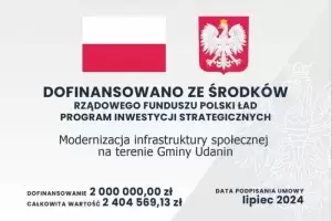 Prace zostały przeprowadzone w oparciu o dofinansowanie w ramach projektu „Modernizacja infrastruktury społecznej na terenie Gminy Udanin” Programu Inwestycji Strategicznych Rządowego Funduszu Polski Ład w wysokości 2 000 000 zł przy całkowitej wartości zadania 2 404 569,13 zł.