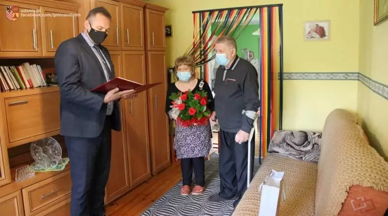 Wójt Gminy Udanin Wojciech Płaziuk odwiedził dziś Państwa Bogdanę i Zygmunta Makowskich z Jarostowa, którzy niedawno obchodzili 50-lecie małżeństwa.