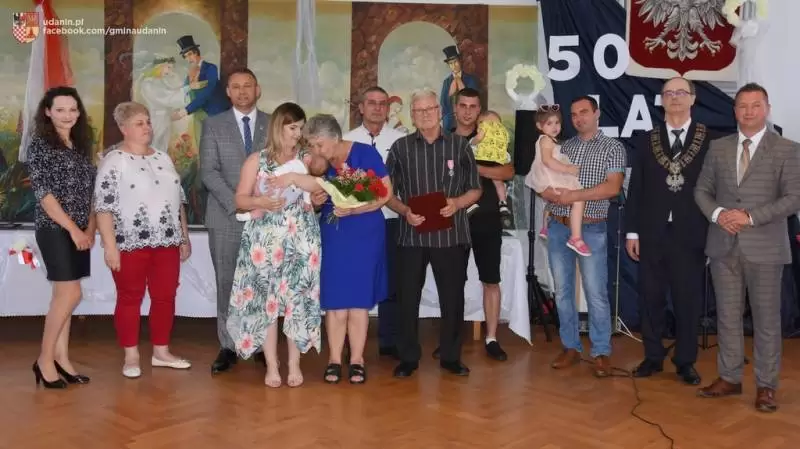 Wójt Gminy Udanin Wojciech Płaziuk 27 czerwca zaprosił małżonków obchodzących "złote" rocznice zawarcia małżeństwa, na uroczystość wręczenia medali za długoletnie pożycie małżeńskie nadanych przez Prezydenta Rzeczypospolitej Polskiej. Do świetlicy w Udaninie przybyło 10 par wraz ze swoimi rodzinami.