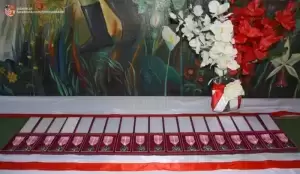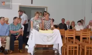 Wręczenie medali przez wójta Wojciecha Płaziuka rozpoczęto hymnem państwowym wykonanym przez Zespół „Cicha Woda” z Udanina. Przewodniczący Rady Gminy Janusz Strzelecki złożył Jubilatom życzenia oraz wręczył listy gratulacyjne, wzniósł toast za pomyślność i zdrowie małżonków, a przybyli goście zaśpiewali Jubilatom 100 lat. Z kolei zespół „Cicha Woda” zaprezentował swój program specjalnie przygotowany na tę okazję.