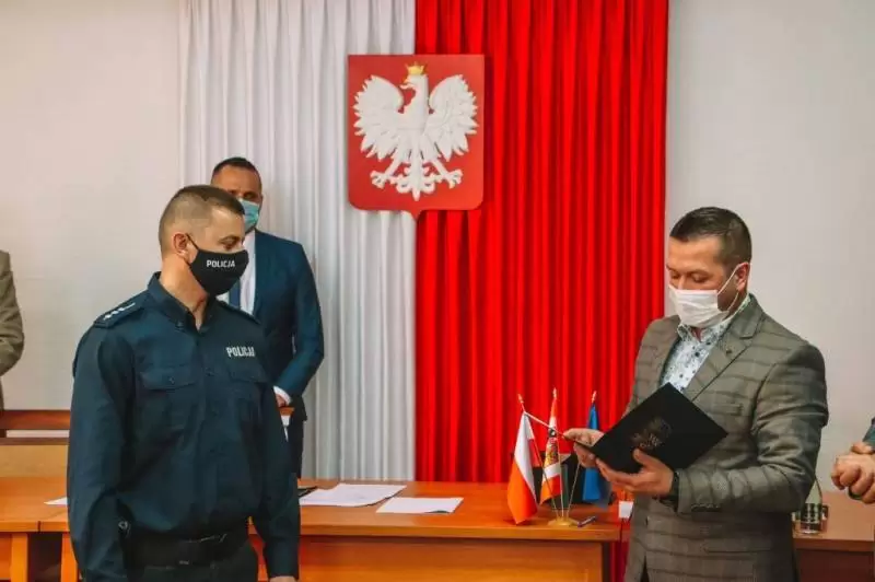 Kierownikowi Markowi Bednarzowi podziękowano za bardzo dobrą współpracę, nieocenioną pomoc i zaangażowanie w sprawy lokalnej społeczności. Jednocześnie w związku z nominacją st. asp. Grzegorza Jańca na stanowisko kierownika Posterunku Policji w Udaninie złożono gratulacje oraz życzenia owocnej współpracy na rzecz podnoszenia bezpieczeństwa gminy.
