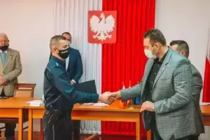Podczas dzisiejszej sesji Rady Gminy Udanin, przewodniczący rady Janusz Strzelecki wraz z wójtem gminy Wojciechem Płaziukiem, wręczyli podziękowanie asp. szt. Markowi Bednarzowi, dotychczasowemu kierownikowi Posterunku Policji w Udaninie, w związku z jego przejściem na emeryturę.